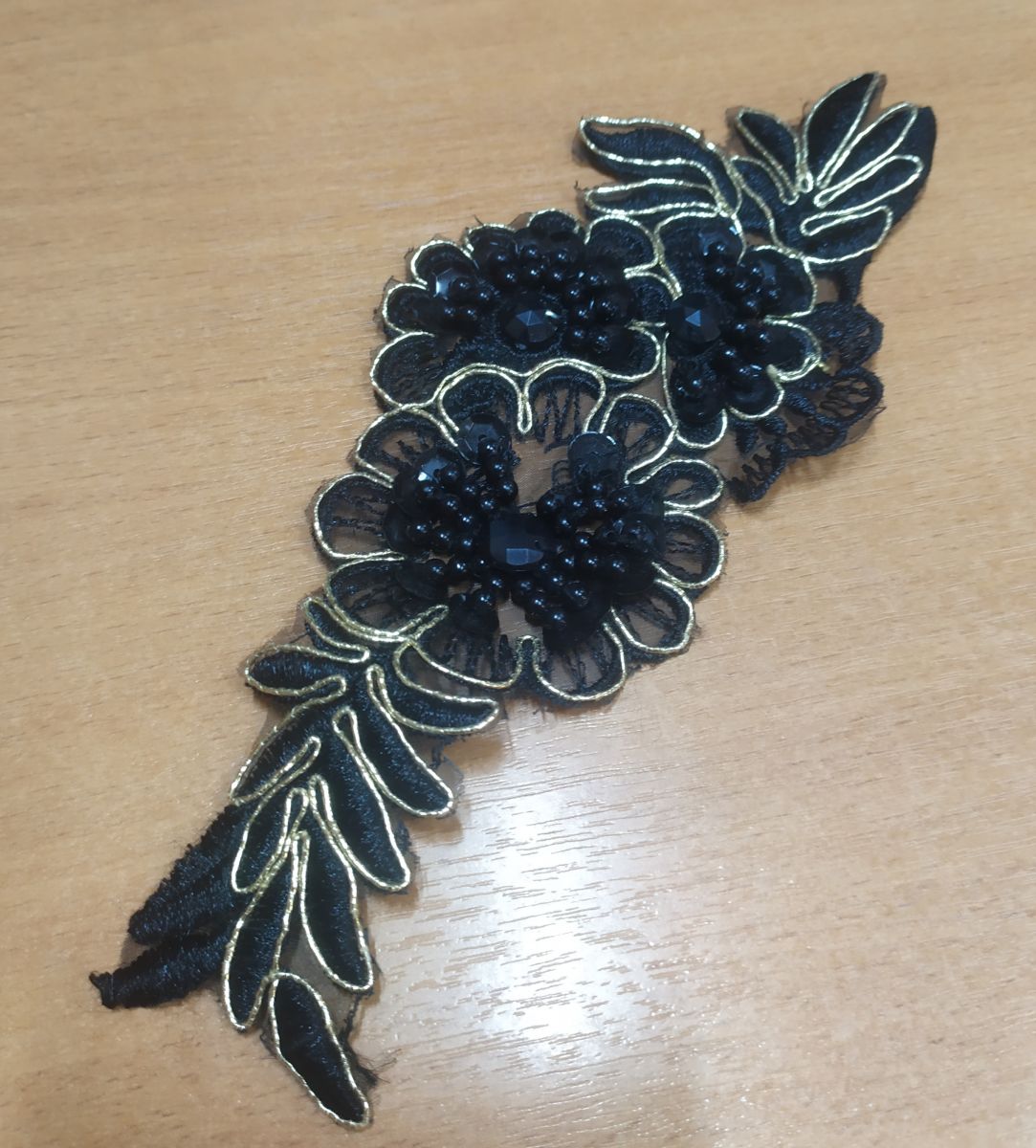 20.02 Нашивка «Цветы черные в золоте» 8,0*20,0см