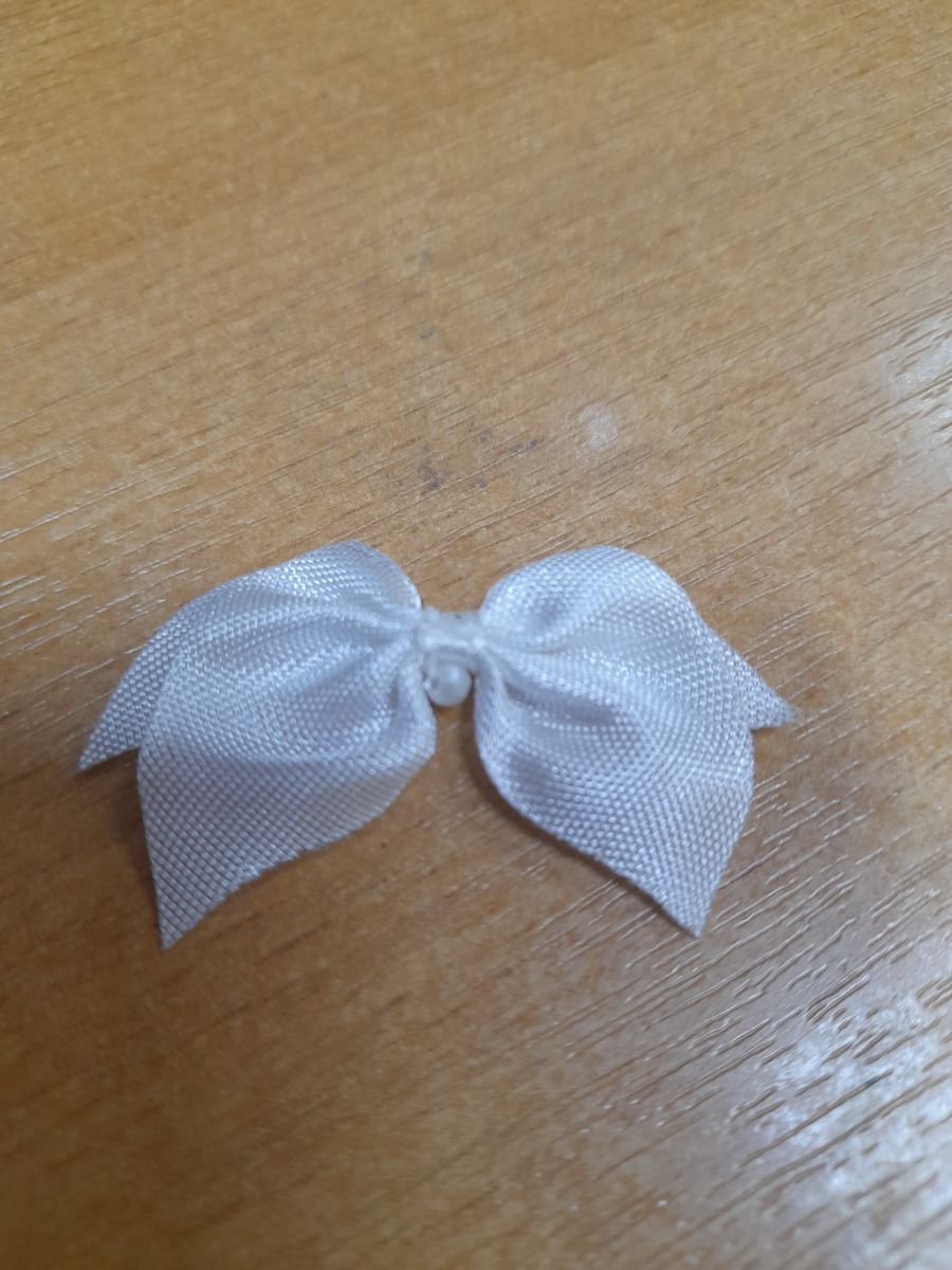 Бантик с бусинкой белый 4см.