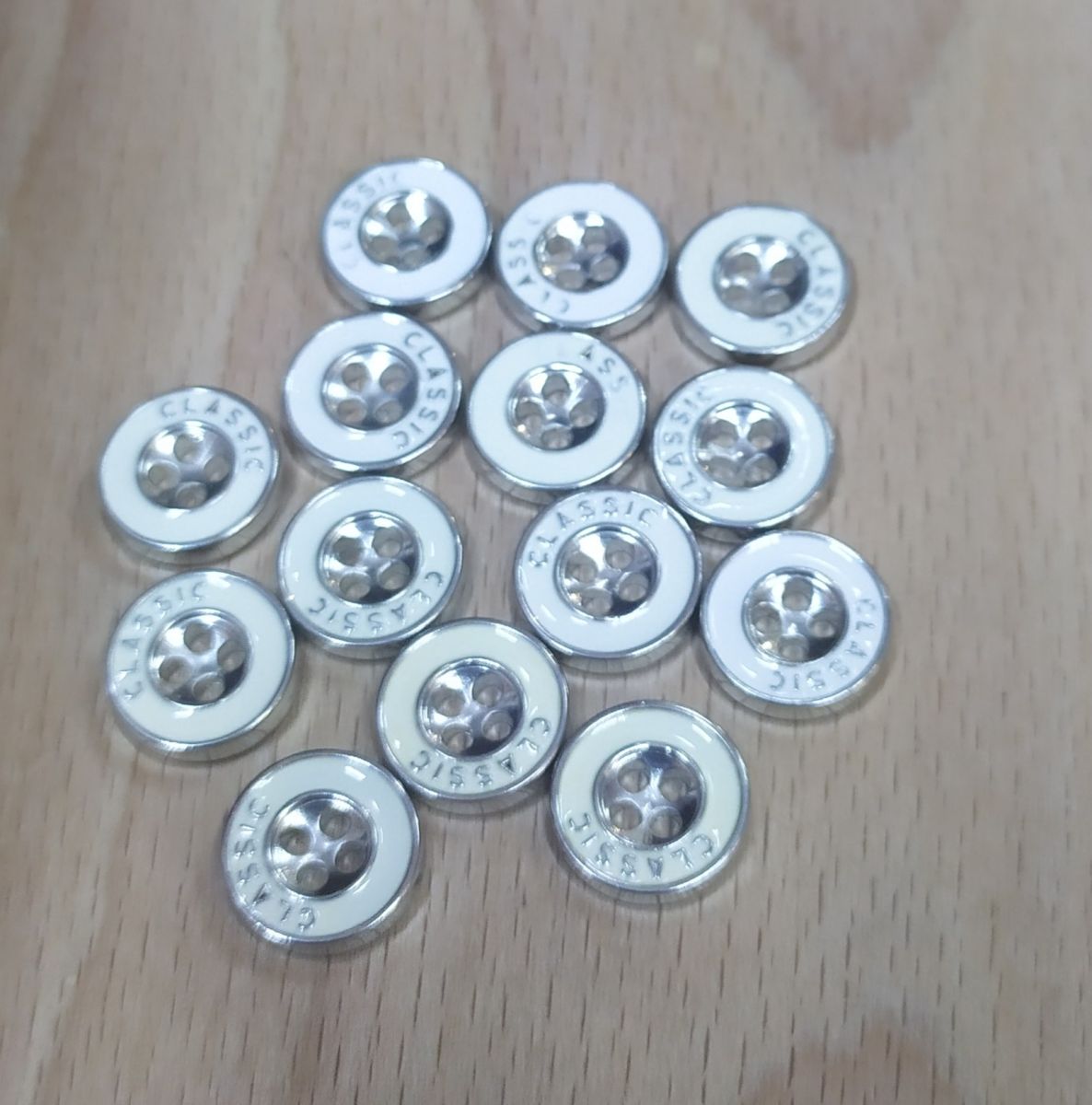 Пуговицы 310 11ммсеребро окантовка молочная